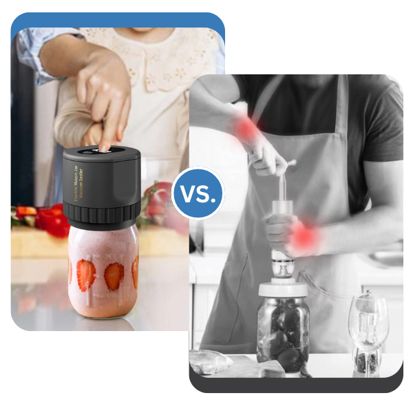 Könnyedén lezárja befőttesüvegeit, és egyetlen gombnyomással megőrzi az ételek frissességét és ízét.